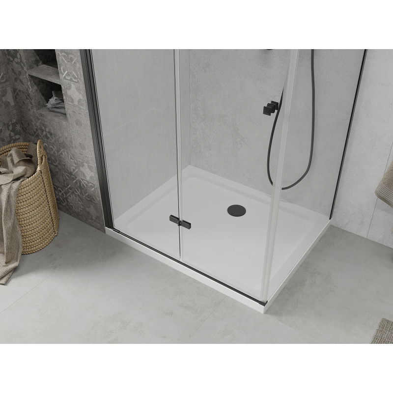 Skládací sprchový kout Mexen Lima 80 x 70 cm, průhledný, černý + plochá sprchová vanička, bílá - 856-080-070-70-00-4010B