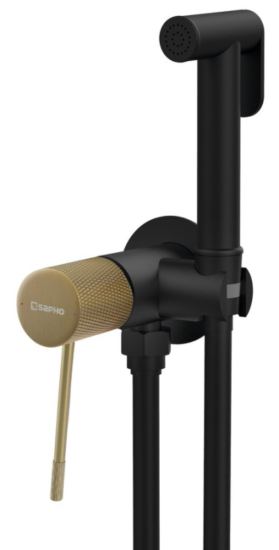 SOLARIS podomietková bidetová batéria so Stop sprškou, guľatá, čierna/zlato mat