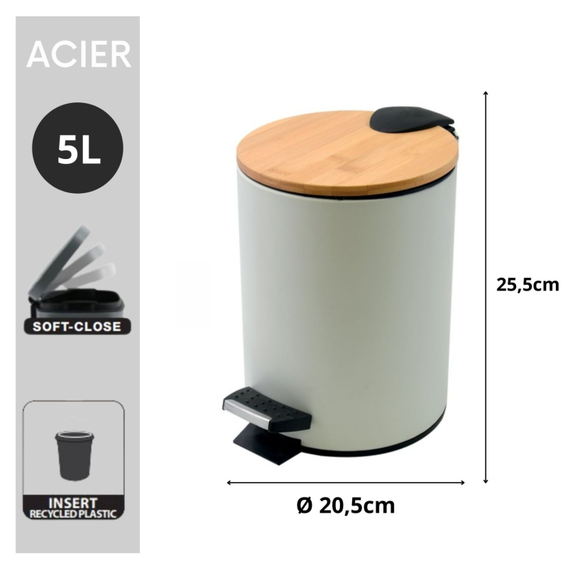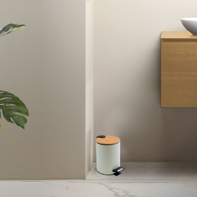 Spirella pedálový odpadkový kôš ADONIS matná biela oceľ bambusové veko 5 L 10.20920