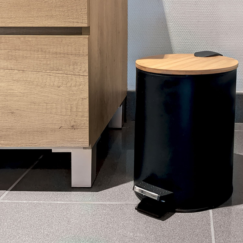 Spirella pedálový odpadkový kôš ADONIS matná čierna oceľ bambusové veko 5 L 10.20921