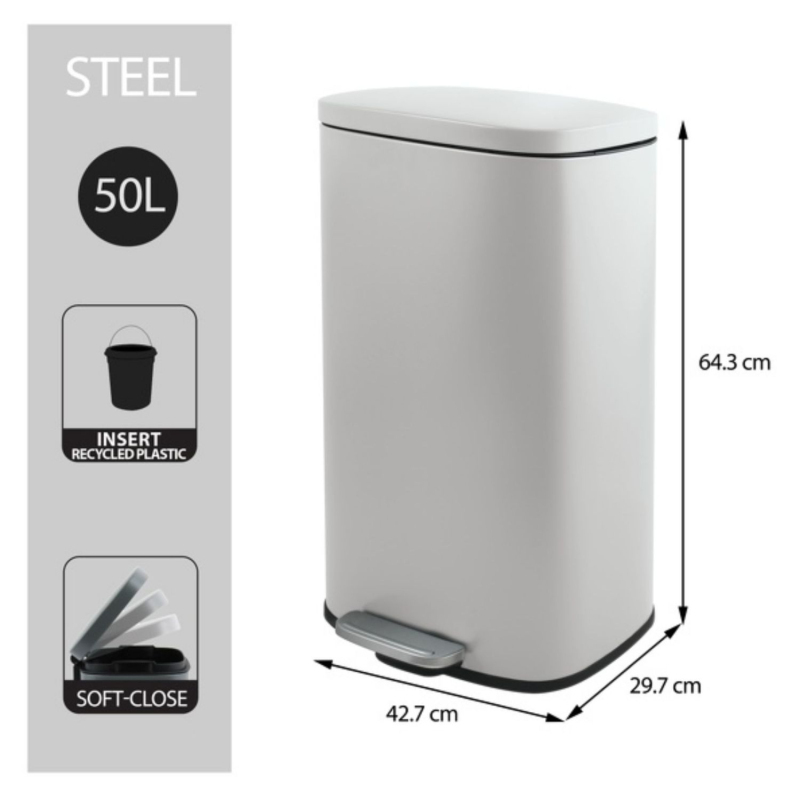 Spirella pedálový odpadkový kôš AKIRA matná biela oceľ soft-close 50 L 10.21572