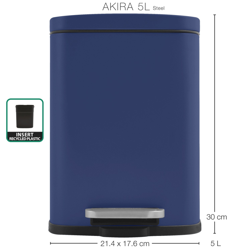 Spirella pedálový odpadkový kôš AKIRA matná modrá oceľ 5 L 10.20821