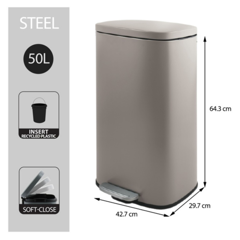 Spirella pedálový odpadkový kôš AKIRA matná šedo-hnedá oceľ soft-close 50 L 10.21571