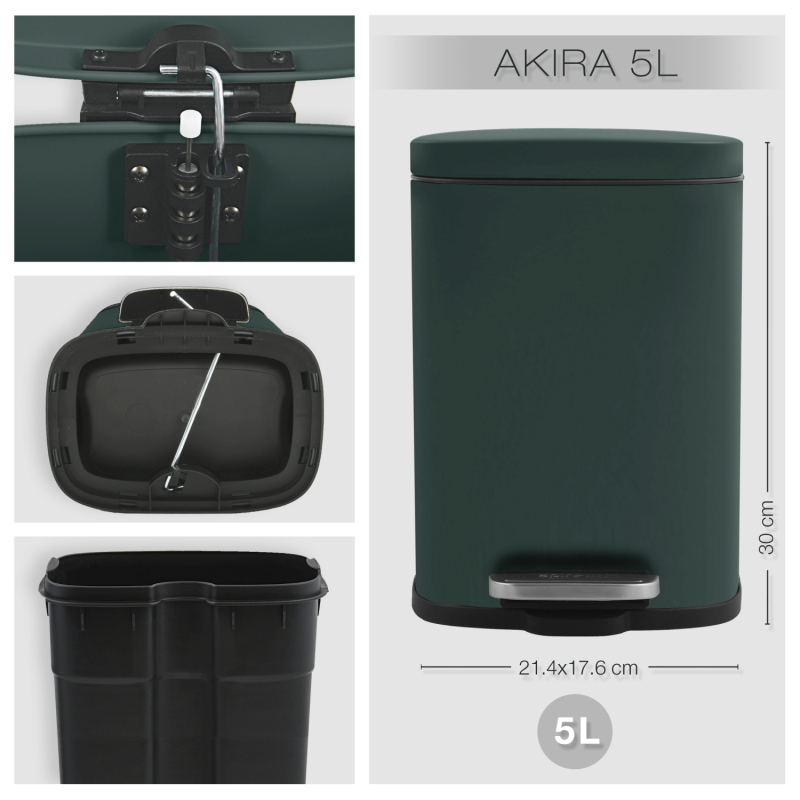 Spirella pedálový odpadkový kôš AKIRA matná tmavo zelená oceľ 5 L 10.20816