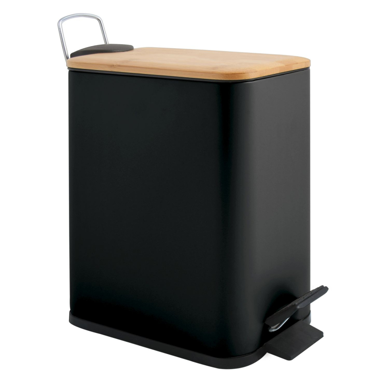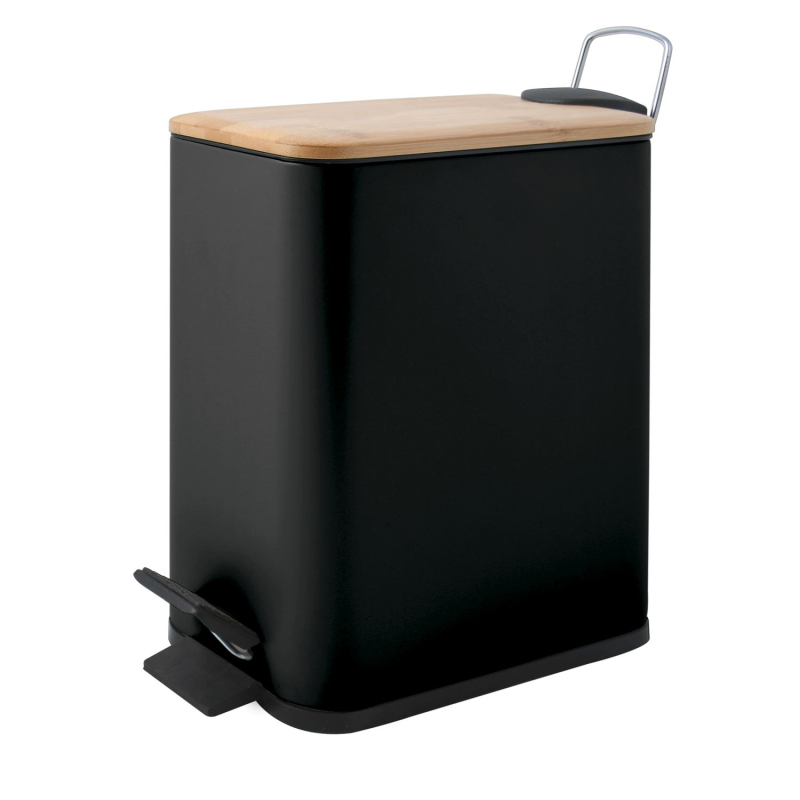 Spirella pedálový odpadkový kôš ERIK matná čierna oceľ bambusové veko 5 L 10.22585