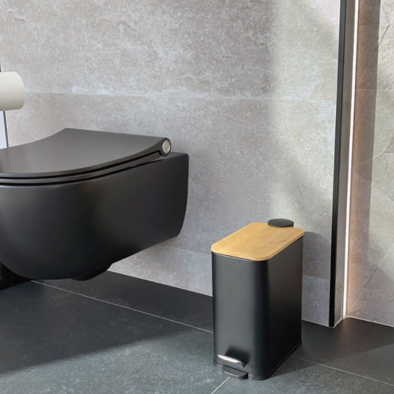 KENTA odpadkový kôš 5l, Soft Close, čierna mat/bambus 1409 57913