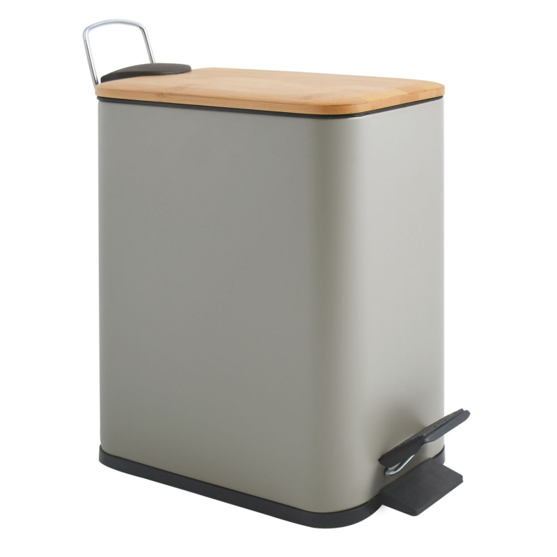 Spirella pedálový odpadkový kôš ERIK šedo-hnedá oceľ bambusové veko 5 L 10.22583
