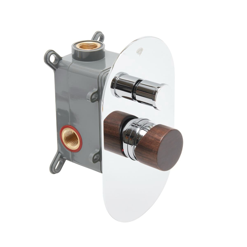 Páková podomietková Sprchová a vaňová batéria vrátane podomietkového telesa. Vo farebnom prevedení tmavé drevo. Vo farebnom prevedení lesk.
