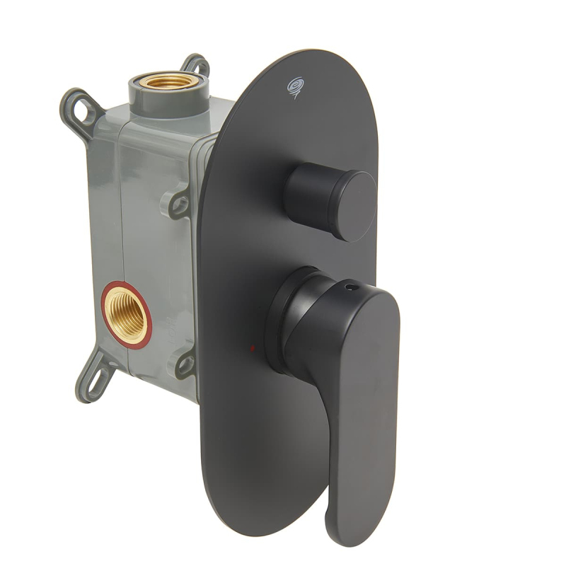 Páková podomítková Sprchová a vanová baterie včetně podomítkového tělesa v černém matném provedení.