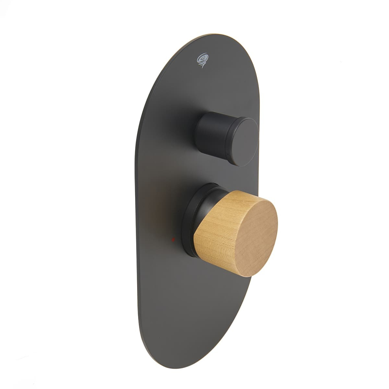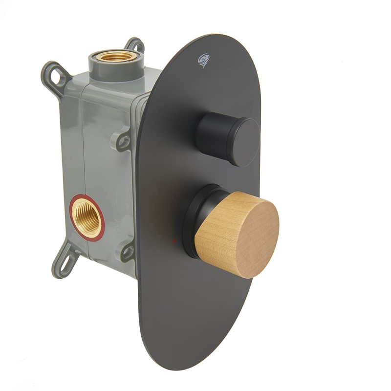 Sprchová a vanová baterie SAT Fusion včetně podomítkového tělesa páka světlé dřevo SATBSFU215DSC