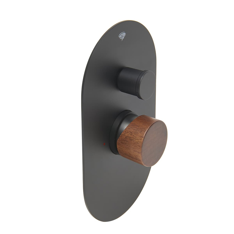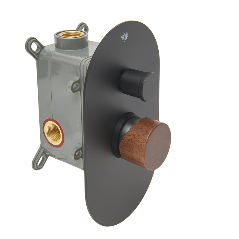 Sprchová a vanová baterie SAT Fusion včetně podomítkového tělesa páka tmavé dřevo SATBSFU215DTC