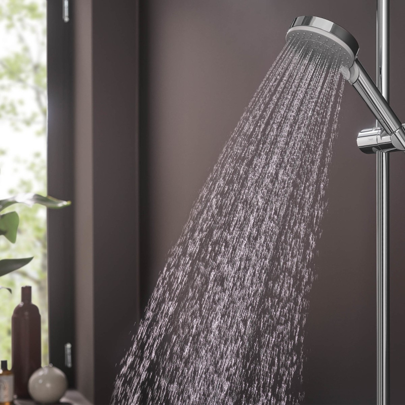 Termostatická nástenná sprchová batéria so sprchovacím setom v chrómovom prevedení. Prietok batérie je 9,7 litrov/minútu. Rozteč batérie 150 mm. Vo farebnom prevedení lesk.