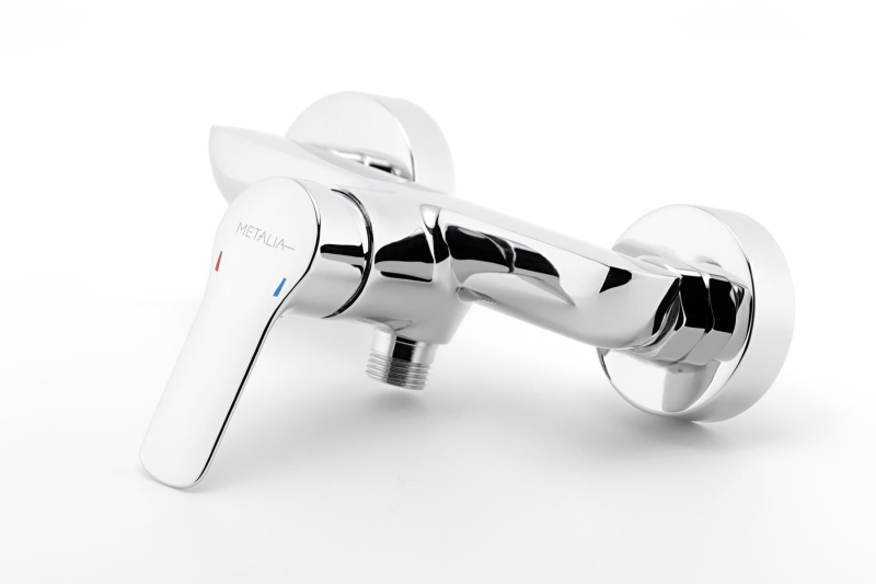 Páková nástenná sprchová batéria bez sprchového setu v chrómovom prevedení. Rozteč batérie 150 mm. Vo farebnom prevedení lesk.