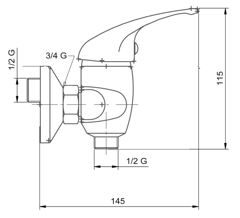 Páková nástenná sprchová batéria so sprchovacím setom. V oblom dizajne. V chrómovom prevedení. Rozteč batérie 150 mm.