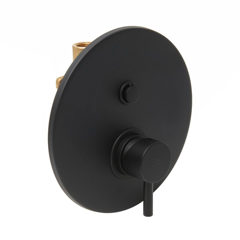 Páková podomietková sprchová batéria s prepínačom vo farebnom prevedení čierny mat. Prietok batérie je 19,7 litrov/minútu. S matným povrchom.