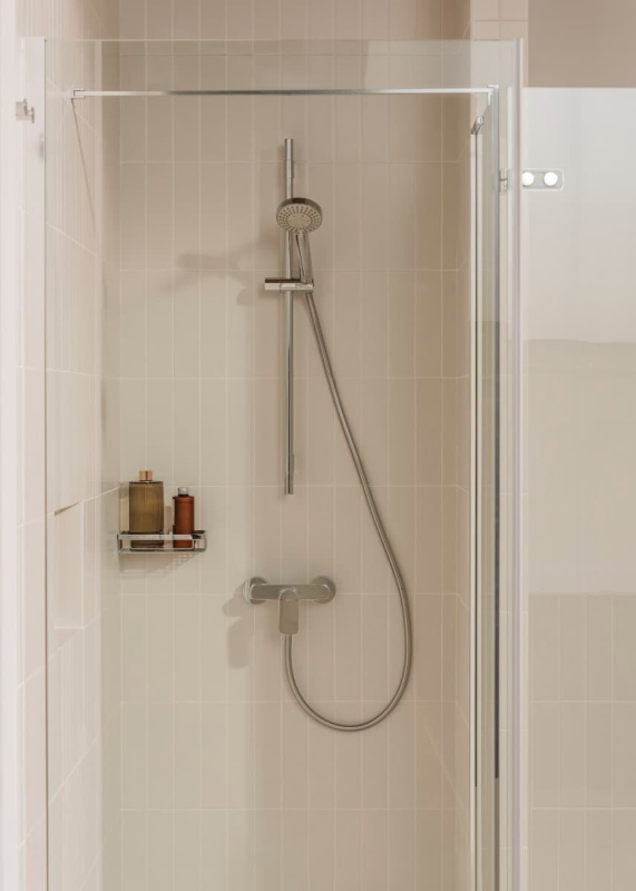 Páková nástenná sprchová batéria bez sprchového setu v chrómovom prevedení. Rozteč batérie 150 mm. Vo farebnom prevedení lesk.