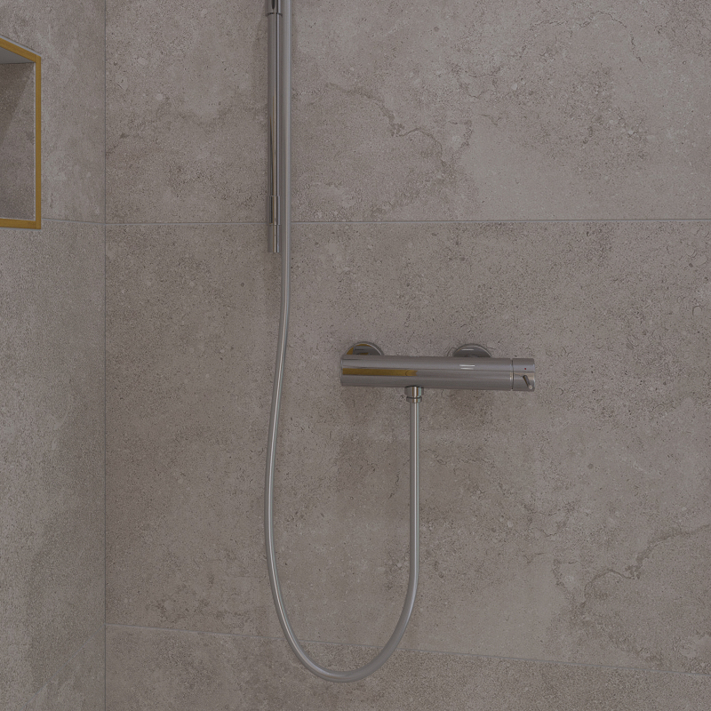 Páková nástenná sprchová batéria bez sprchového setu. V okrúhlom dizajne v chrómovom prevedení. Rozteč batérie 150 mm. Vo farebnom prevedení lesk