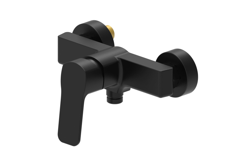 Páková nástenná sprchová batéria bez sprchového setu vo farbe čierna matná. Prietok batérie je 17,5 litrov/minútu. Rozteč batérie 150 mm. S matným povrchom.
