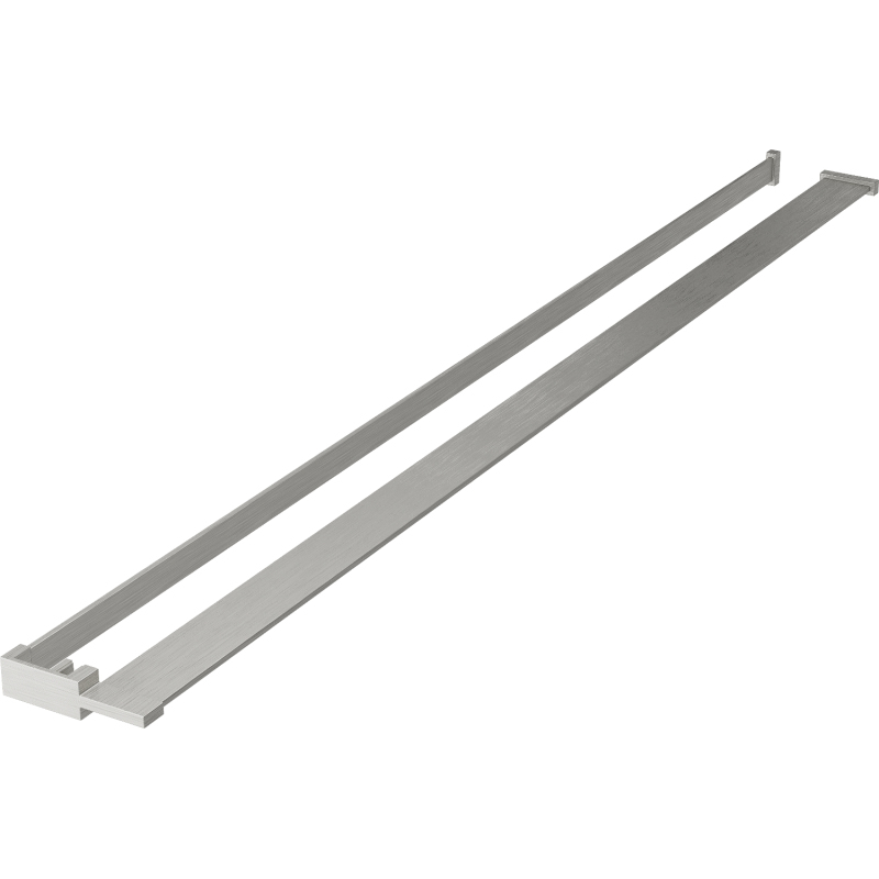 Specifikace produktu: Materiál: Hliník Barva: Kartáčovaný nikl Šířka: 12,9 cm Výška: 3,2 cm Max. délka police: 140 cm Možnost zkrácení police Libovolná montážní výška
