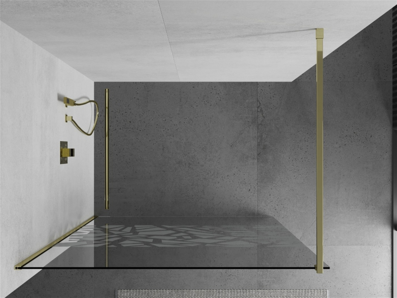 Sprchová stena Mexen Kyoto 100 x 200 cm, transparentný/biely vzor 8 mm, zlatá - 800-100-101-50-85