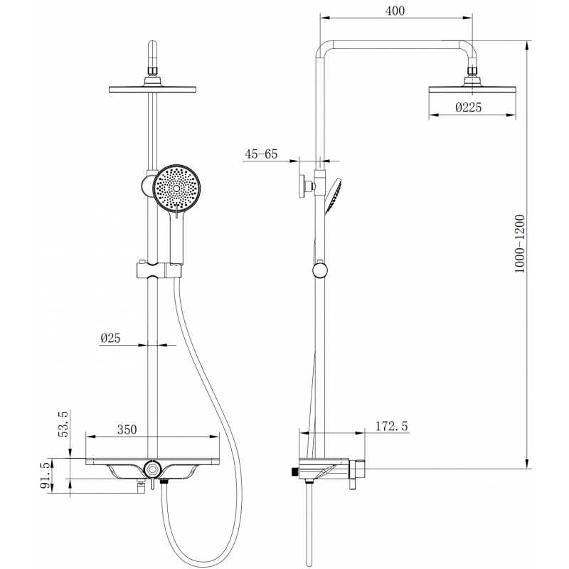 Špecifikácia produktu: Materiál stĺpika: Nerezová oceľ Povrchová úprava stĺpika: Biela Výška: 1000-1200 mm Šírka stĺpika: ø25 mm Vzdialenosť od steny: 400 mm Posuvný držiak ručného ovládača Materiál sprchovej hlavice: ABS Povrchová úprava sprchovej hlavice: Biela Veľkosť sprch Povrchová úprava ručného ovládača: Biela Počet funkcií: 3 Materiál hadice: PVC Povrchová úprava hadice: Biela Dĺžka hadice: 150 cm Mosadzné koncovky Hladký povrch uľahčuje údržbu Otočné koncovky zabraňujú krúteniu Flexibilný materiál odolný voči naťahovaniu a ohýbaniu Materiál batérie: Výpust umiestnený v spodnej časti batérie Praktická polička na kozmetiku Bez možnosti regulácie tlaku vody, zapínania a vypínania prúdu funkciou ON-OFF