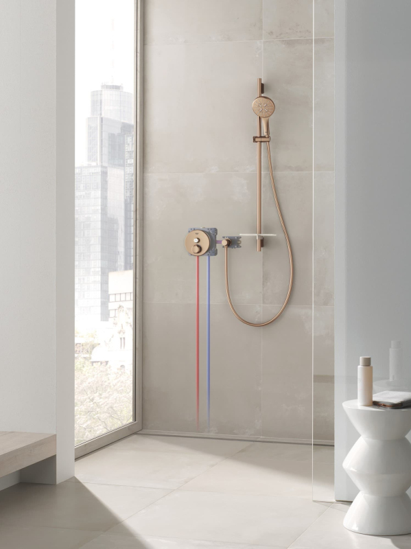 Sprchová tyč Grohe Rainshower SmartActive na stenu s poličkou kartáčovaný Warm Sunset 26603DL0