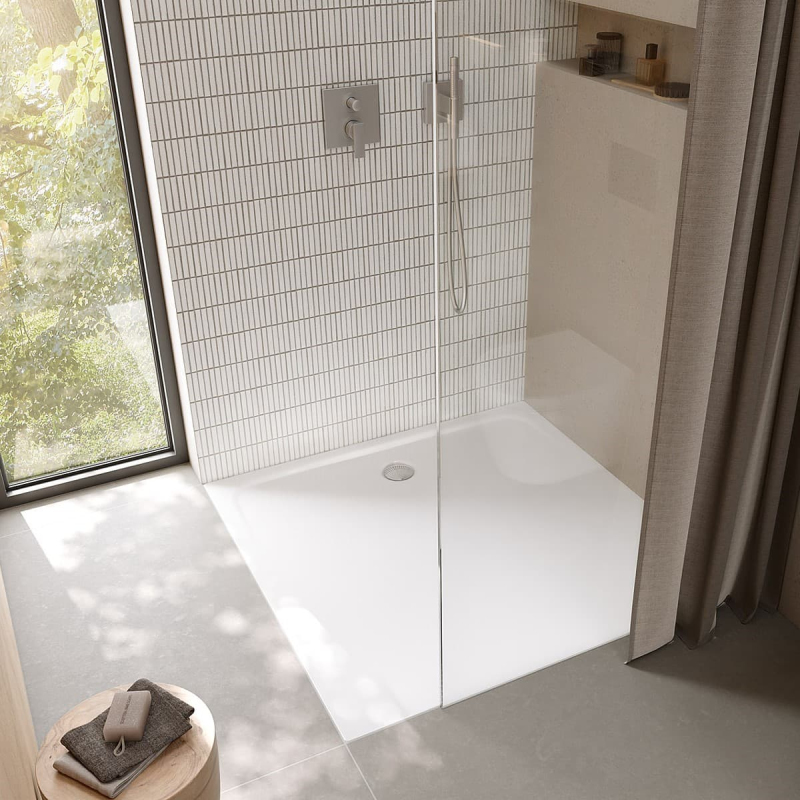 Sprchová vanička ze smaltované oceli v alpské bílé barvě o rozměru 90x90x1,85 cm. Balení bez sifonu.