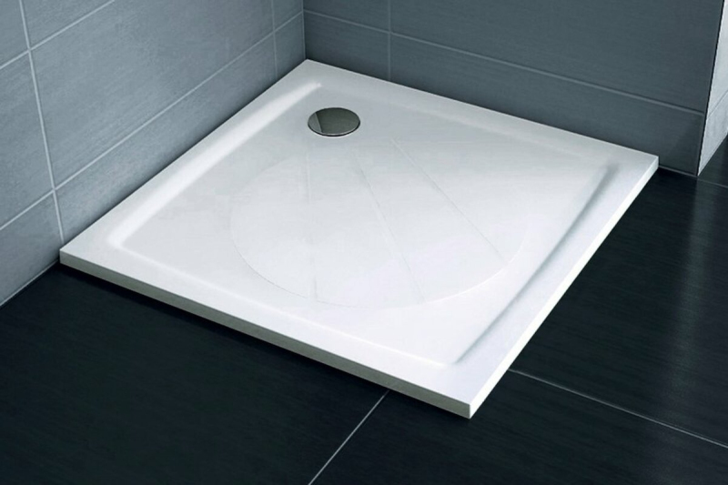 Sprchová vanička z litého mramoru v bílé barvě o rozměru 80x80x3 cm. Balení bez sifonu a nožiček.