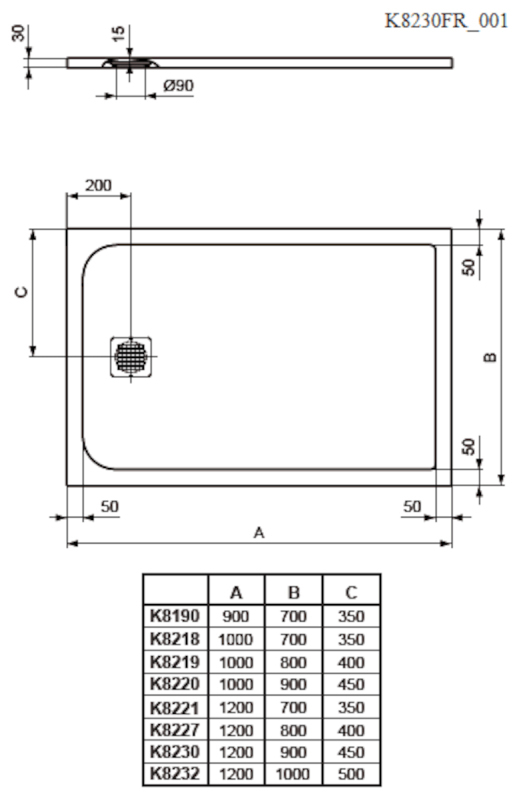Sprchová vanička obdĺžniková Ideal Standard 120x90 cm liaty mramor K8230FR