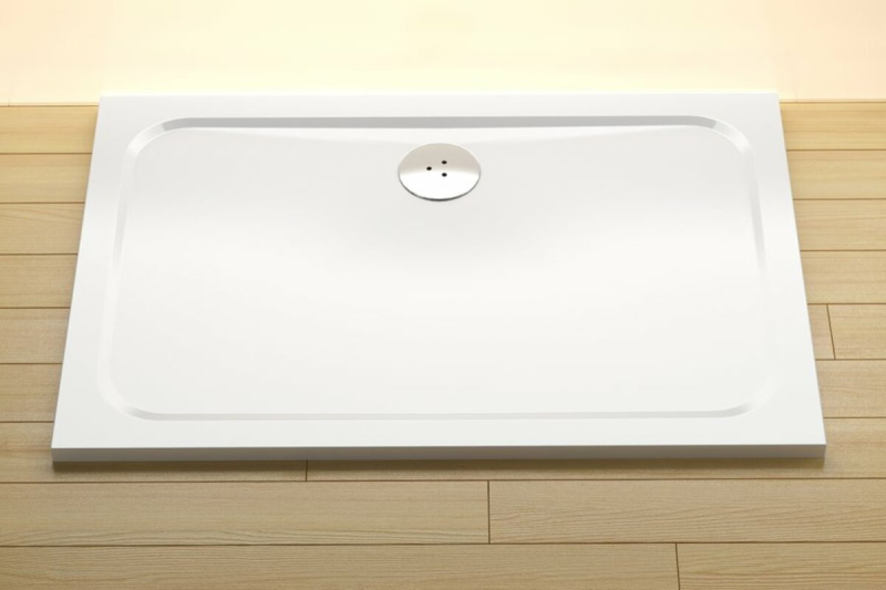 Sprchová vanička z liateho mramoru v bielej farbe o rozmere 110x80x3 cm. Balenie bez sifónu a nožičiek.