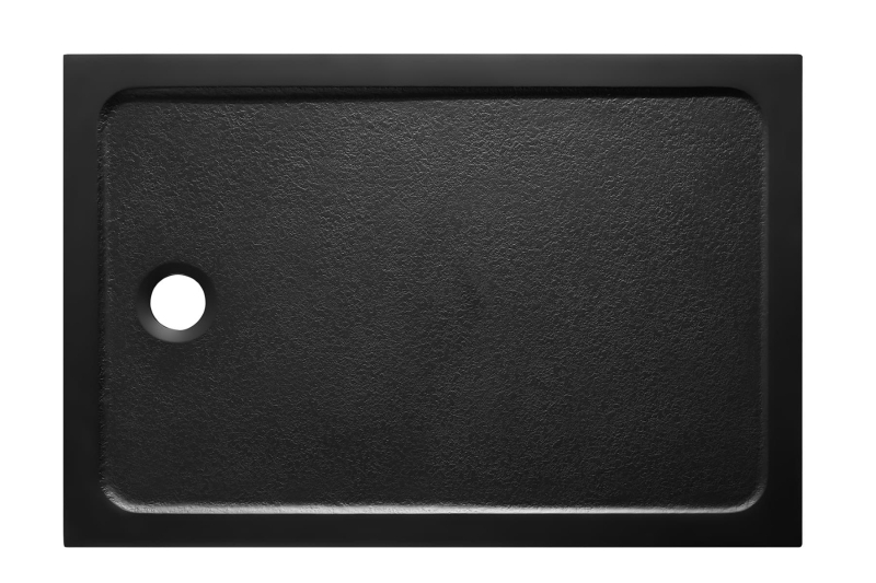 Sprchová vanička z liateho mramoru v čiernej farbe o rozmere 140x80 cm. Balenie bez sifónu a nožičiek.