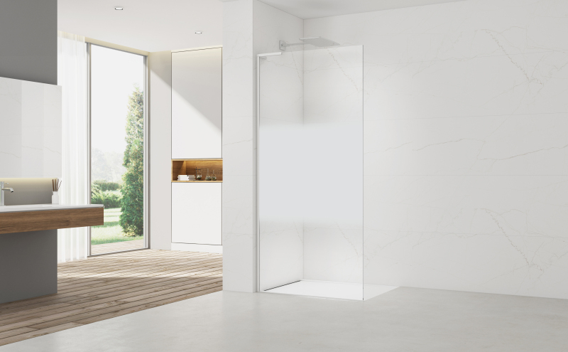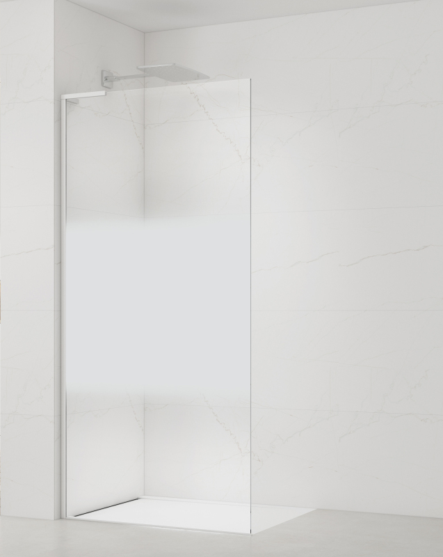 Sprchová zástena walk-in s profilmi a zavetrovaním biela, výplň je z číreho skla s intím pásom. Produkt je opatrený povrchovou úpravou Easy Clean, ktorá uľahčuje čistenie a minimalizuje usadzovanie vodného kameňa. Nedá sa otvoriť - pevný systém. Určenie - ľavá orientácia.