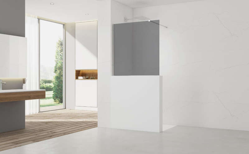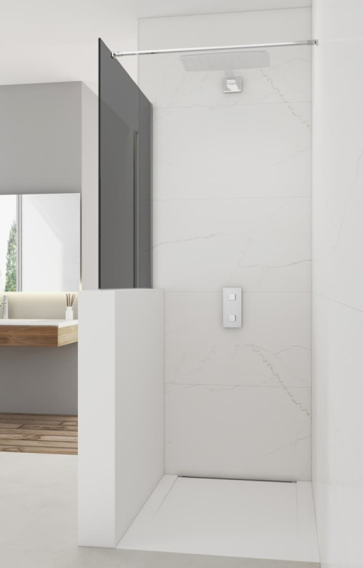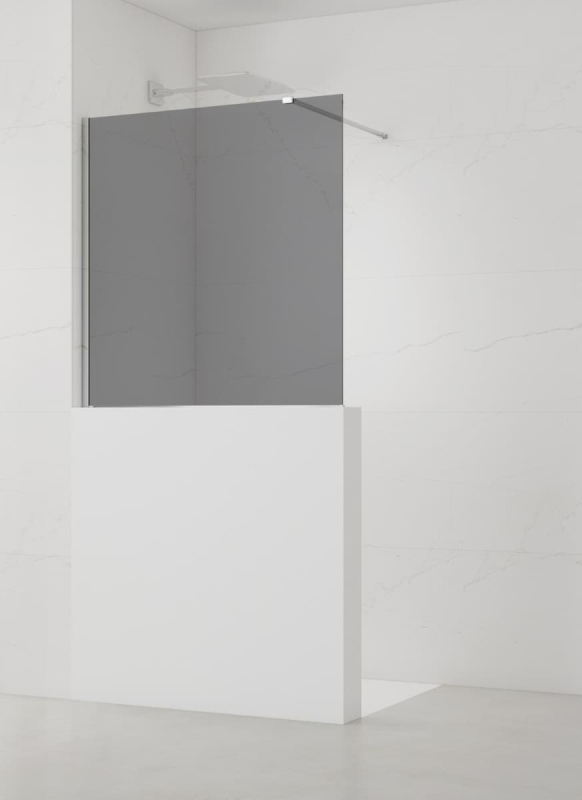 Sprchová zástena walk-in s profilmi a zavetrovaním v lesklom chrómu a má dekor dymového efektu a má dekor dymového efektu. Produkt je opatrený povrchovou úpravou Easy Clean, ktorá uľahčuje čistenie a minimalizuje usadzovanie vodného kameňa. Nedá sa otvoriť - pevný systém. Určenie - ľavá aj pravá orientácia.