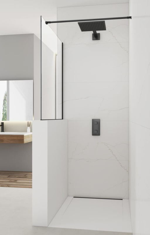 Sprchová zástena walk-in s profilmi a zavetrovaním v čiernej farbe, výplň je z číreho skla bez dekoru. Produkt je opatrený povrchovou úpravou Easy Clean, ktorá uľahčuje čistenie a minimalizuje usadzovanie vodného kameňa. Nedá sa otvoriť - pevný systém. Určenie - ľavá aj pravá orientácia.