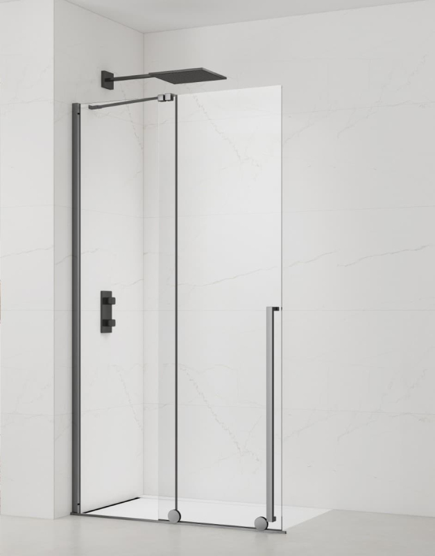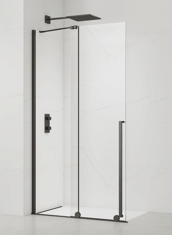 Sprchová zástena walk-in bez vaničky as farbou profilov v čiernej farbe, výplň je z číreho skla bez dekoru. Produkt je opatrený povrchovou úpravou Easy Clean, ktorá uľahčuje čistenie a minimalizuje usadzovanie vodného kameňa. Posuvný systém otvárania. Určenie - ľavá aj pravá orientácia.