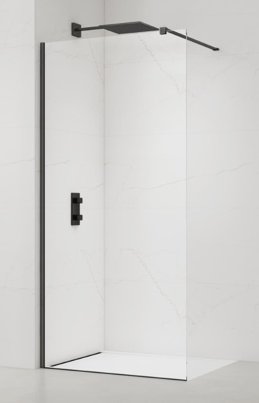 Sprchová zástena walk-in s profilmi a zavetrovaním v čiernej farbe, výplň je z číreho skla bez dekoru. Produkt je opatrený povrchovou úpravou Easy Clean, ktorá uľahčuje čistenie a minimalizuje usadzovanie vodného kameňa. Nedá sa otvoriť - pevný systém. Určenie - ľavá aj pravá orientácia.