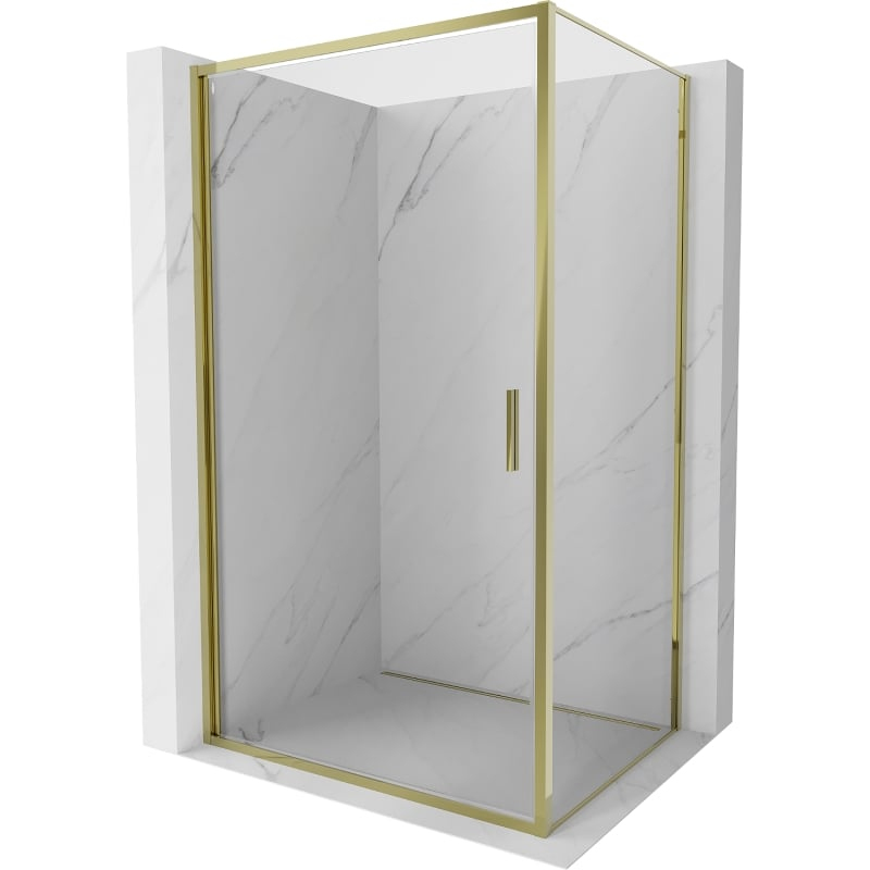 Špecifikácia produktu: Rozmer: 70x90 cm (dvere 70 cm, stena 90 cm) Výška: 200 cm Montáž: Univerzálny Vstup: Dvere s otočnými krídlami Farba skla: Priehľadná Povrchová úprava: Zlatá Typ skla: Tvrdené Hrúbka skla: 6 mm Profil: Možnosť montáže na sprchovú vaničku alebo obklady Kovová rukoväť Sada tesnení na odvod vody Hliníkový prah na tesnenie dverí