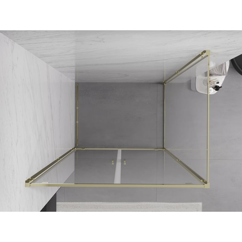 Špecifikácia produktu: Rozmer: 80x85 cm (dvere 80 cm, stena 85 cm) Výška: 200 cm Montáž: Univerzálny Vstup: Dvere s otočnými krídlami Farba skla: Priehľadná Povrchová úprava: Zlatá Typ skla: Tvrdené Hrúbka skla: 6 mm Profil: Možnosť montáže na sprchovú vaničku alebo obklady Kovová rukoväť Sada tesnení na odvod vody Hliníkový prah na tesnenie dverí