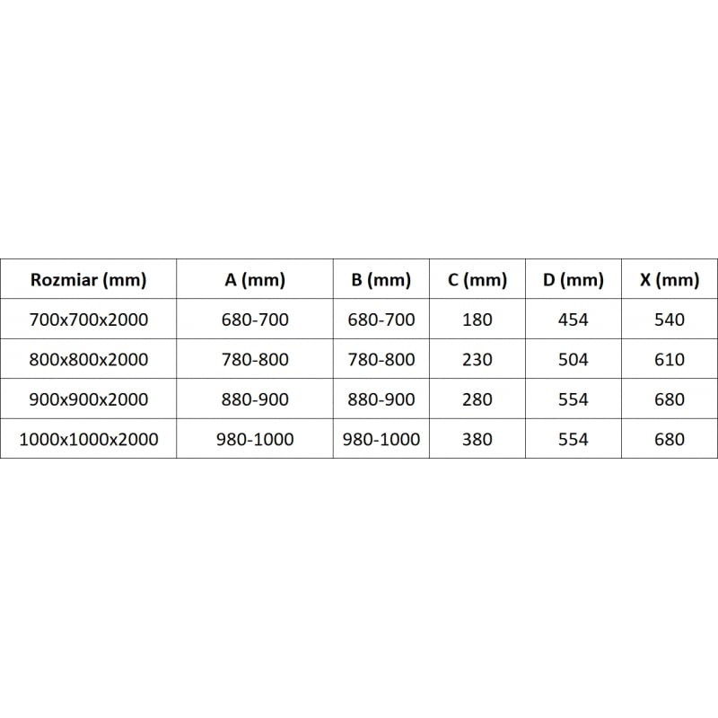 Špecifikácia produktu: Rozmer: 70x70 cm Výška: 200 cm Montáž: Univerzálny Vstup: Dvere s otočnými krídlami Farba skla: Priehľadná Povrchová úprava: Zlatá Typ skla: Tvrdené Hrúbka skla: 6 mm Profil: Hliník Povlak pre ľahké čistenie Vyrovnanie nerovností steny rukoväť Sada tesnení na odvod vody Hliníkový prah tesnenia dverí