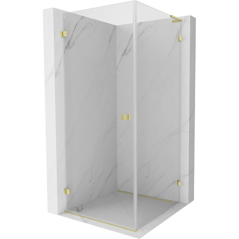 Sprchovací kút Mexen Lunar-B L ľavý výklopný 90 x 90 cm, priehľadný, kartáčované zlato - 832L-090-090-55-00-L