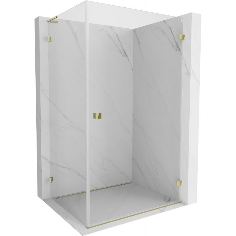 Špecifikácia produktu: Rozmer: 75x70 cm (pravé dvere 75 cm, stena 70 cm) Výška: 200 cm Strana montáže: Pravá Vchod: Dvere s otočnými pántami Farba skla: Priehľadná Povrchová úprava: Zlatá Profil: Hliník Stabilizátor v tvare L: Nerezová oceľ Typ skla: 8 mm Obliečka na jednoduché čistenie Možnosť nastavenia šírky Dva montážne systémy: - s profilom, ktorý umožňuje vyrovnanie nerovností steny - bez profilu v prípade dokonale rovných stien Možnosť montáže na sprchovú vaničku alebo obklady Mechanizmus na zdvíhanie a spúšťanie dverí Mosadzné svorky v jednej rovine so sklenenou tabuľou dverí Magnetický prúžok dverí