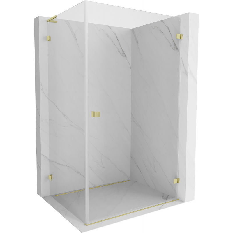 Špecifikácia produktu: Rozmer: 95x70 cm (pravé dvere 95 cm, stena 70 cm) Výška: 200 cm Strana montáže: Pravá Vchod: Dvere s otočnými pántami Farba skla: Priehľadná Povrchová úprava: Kartáčované zlato Profil: Hliník Uhlový stabilizátor L: Nehrdzavejúca oceľ Typ skla: 8 mm Obliečka na jednoduché čistenie Možnosť nastavenia šírky Dva montážne systémy: - s profilom, ktorý umožňuje vyrovnanie nerovností stien - bez profilu v prípade dokonale rovných stien Možnosť montáže na sprchovú vaničku alebo obklady Mechanizmus na zdvíhanie a spúšťanie dverí Mosadzné svorky v jednej rovine so sklenenou tesniacou drážkou