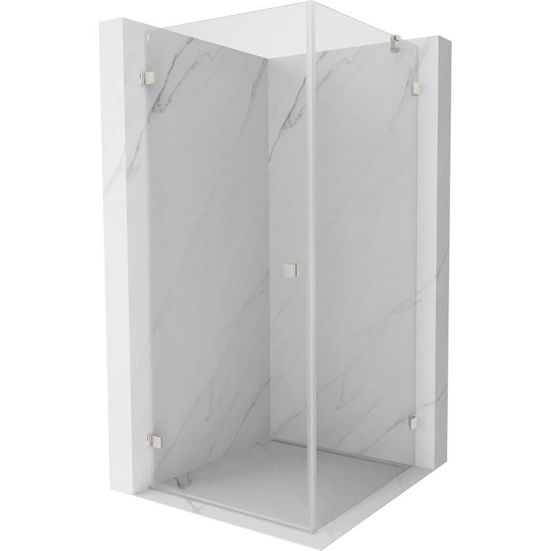 Sprchovací kút Mexen Lunar-B s ľavým výklopným uchytením 100 x 100 cm, priehľadný, kartáčovaný nikel - 832-100-100-97-00-L