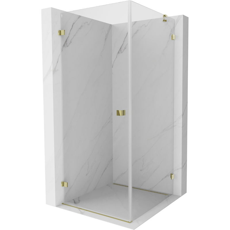 Sprchovací kút Mexen Lunar-B s ľavým výklopným uchytením 100 x 100 cm, priehľadný, zlatý - 832-100-100-50-00-L