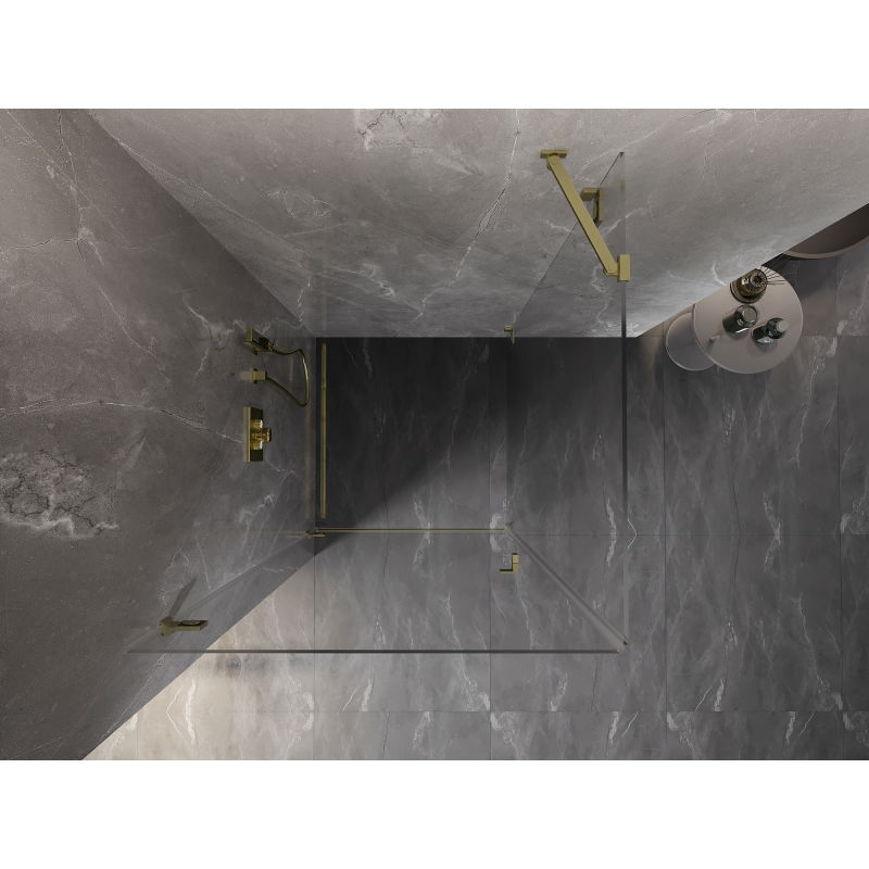 Sprchovací kút Mexen Lunar-B s ľavým výklopným uchytením 70 x 70 cm, priehľadný, kartáčované zlato - 832-070-070-55-00-L