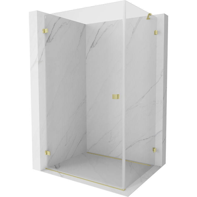 Špecifikácia produktu: Rozmer: 95x70 cm (ľavé dvere 95 cm, stena 70 cm) Výška: 200 cm Strana montáže: Ľavá Vchod: Dvere s otočnými pántami Farba skla: Priehľadná Povrchová úprava: Kartáčované zlato Profil: Hliník Typ skla: Tvrdené Hrúbka skla: dve Nastaviteľná šírka Dva montážne systémy: - s profilom, ktorý umožňuje vyrovnanie nerovností stien - bez profilu pre dokonale rovné steny Možnosť montáže na sprchovú vaničku alebo obklady Mechanizmus na zdvíhanie a spúšťanie dverí Mosadzné svorky v jednej rovine so sklenenou tabuľou Magnetický prúžok a elastomérové tesnenie pre odvod vody