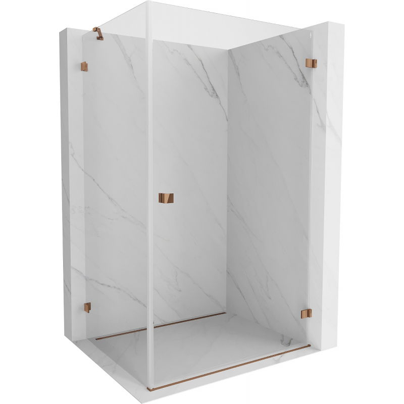 Špecifikácia produktu: Rozmer: 100x70 cm (pravé dvere 100 cm, stena 70 cm) Výška: 200 cm Strana montáže: Pravá Vchod: Dvere s otočnými pántami Farba skla: Priehľadná Povrchová úprava: Ružové zlato Profil: Hliník Typ skla: Tvrdené Hrúbka skla: Možnosť nastavenia šírky Dva montážne systémy: - s profilom, ktorý umožňuje vyrovnanie nerovností stien - bez profilu v prípade dokonale rovných stien Možnosť montáže na sprchovú vaničku alebo obklady Mechanizmus na zdvíhanie a spúšťanie dverí Mosadzné svorky v jednej rovine so sklenenou tabuľou Magnetický prúžok a elastomérové tesnenie pre odvod vody