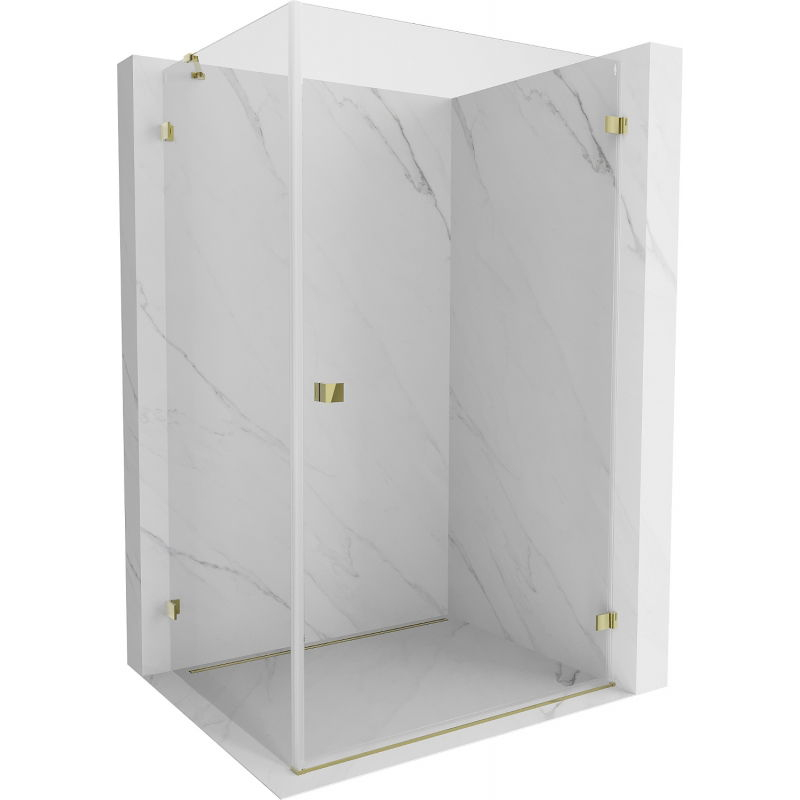 Špecifikácia produktu: Rozmer: 90x70 cm (pravé dvere 90 cm, stena 70 cm) Výška: 200 cm Strana montáže: Pravá Vchod: Dvere s výklopnými krídlami Farba skla: Priehľadná Povrchová úprava: Zlatá Profil: Hliník Typ skla: Tvrdené Hrúbka skla: dve Nastaviteľná šírka Dva montážne systémy: - s profilom, ktorý umožňuje vyrovnanie nerovností stien - bez profilu pre dokonale rovné steny Možnosť montáže na sprchovú vaničku alebo obklady Mechanizmus na zdvíhanie a spúšťanie dverí Mosadzné svorky v jednej rovine so sklenenou tabuľou Magnetický prúžok a elastomérové tesnenie pre odvod vody