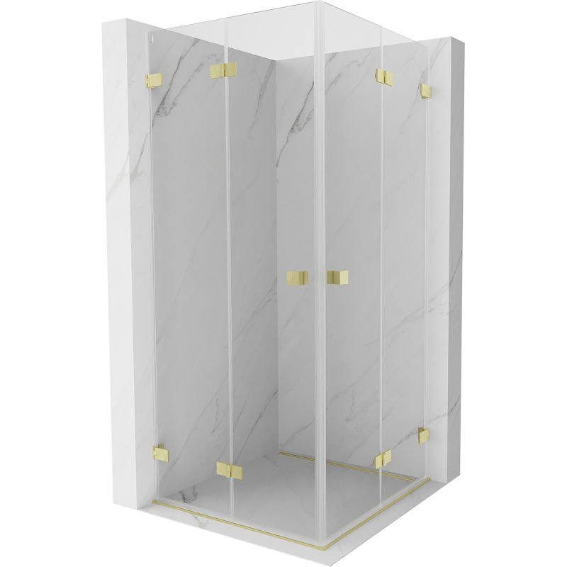Sprchovací kút Mexen Lunar-F Duo skladací 75 x 75 cm, priehľadný, kartáčované zlato - 836-075L-075P-55-00