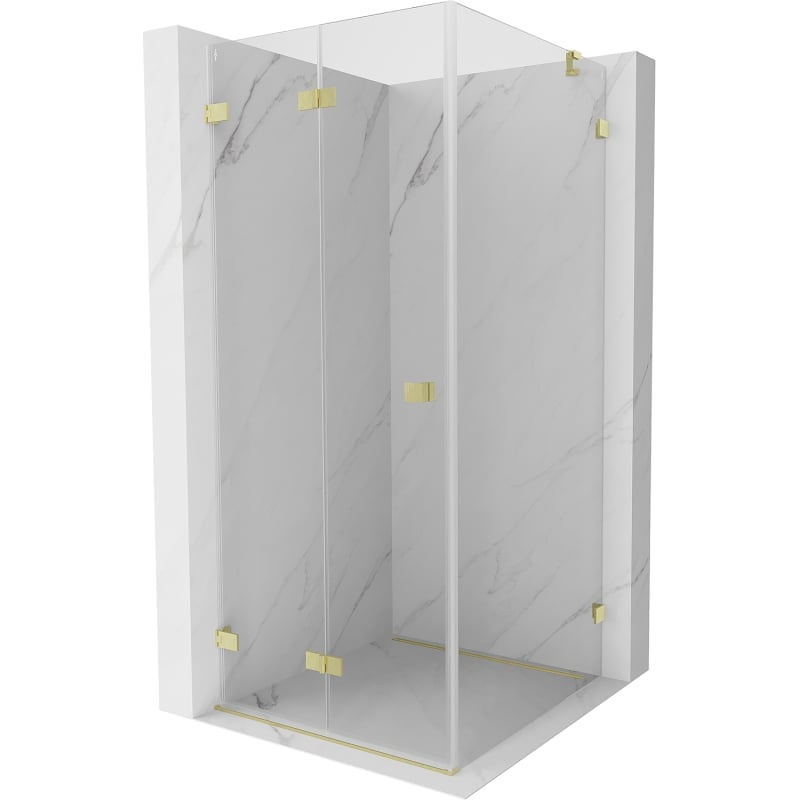 Sprchovací kút Mexen Lunar-F skladací ľavý 90 x 90 cm, priehľadný, kartáčované zlato - 836-090-090-55-00-L